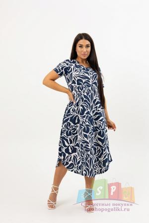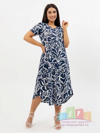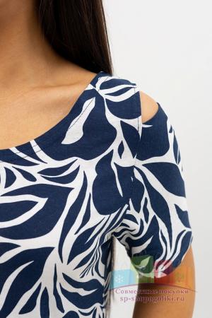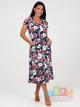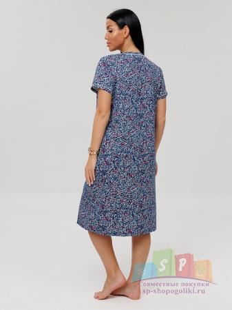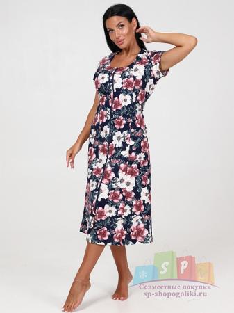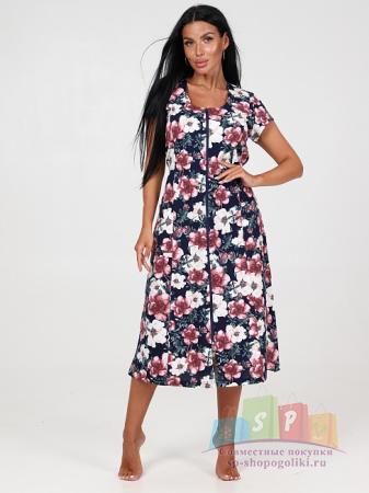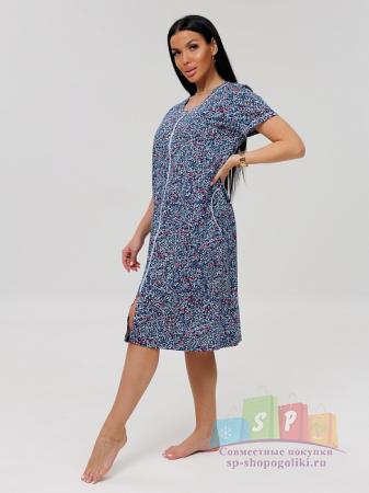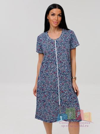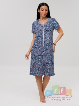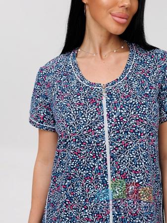Описание: Женский халат Х-95(К) / Синий (веточки) на молнии, с короткими рукавами. Женский домашний халат из кулирки имеет широкий размерный ряд и яркие расцветки.
