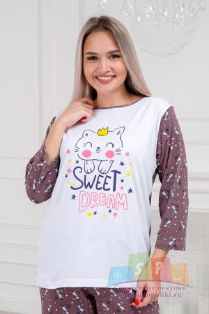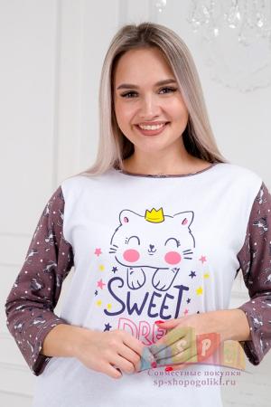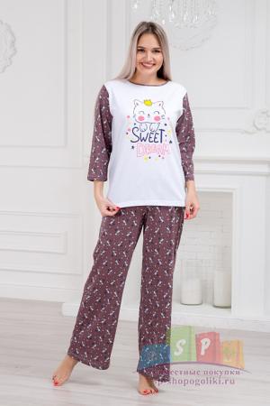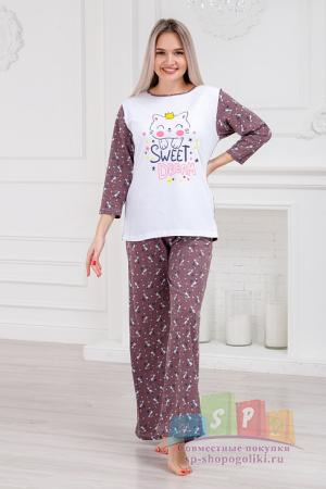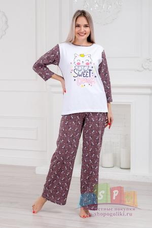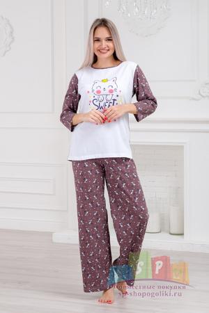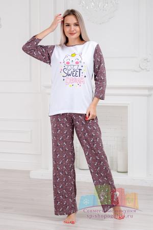 Наименование: Пижама женская из кулирки Кисонька / Белый