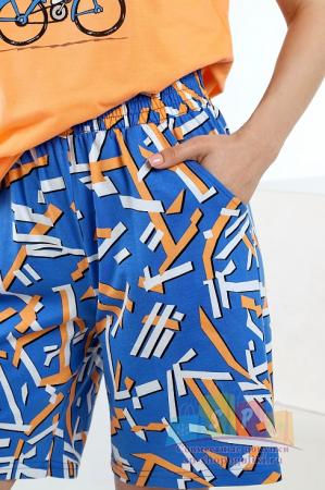 Описание: Материал: Кулирка Состав: 100% хлопок Длина рукава: Короткий рукав Размерный ряд: 44-54 Цвет: Оранжевыи?, Синии? Тип рисунка: Однотонный, Геометрия Костюм молодежный из трикотажного полотна «кулирка» в комбинации двух видов в единой цветовой гамме: гладкокрашеного и с набивным рисунком, состоящий из футболки и шорт. Футболка – из гладкокрашеного полотна, с короткими цельнокроеными рукавами, горловиной V-образной формы, обработанной втачной планкой и принтом на полочке. Шорты - из полотна с набивным рисунком, средней длины на широком притачном поясе с эластичной тесьмой внутри, с двумя карманами в боковых швах.
