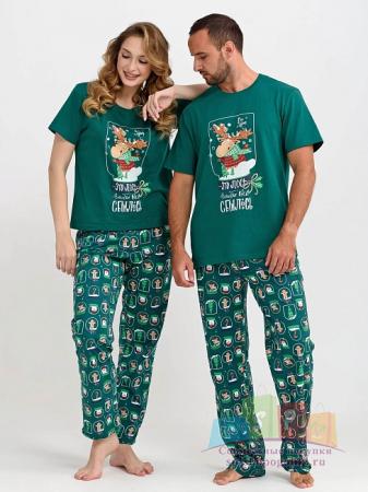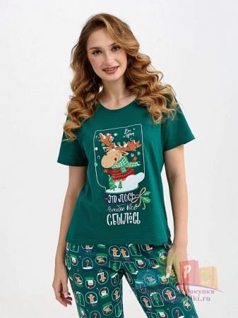 Описание: Женская пижама "Все будет!" 2261-К / Изумрудный с футболкой и свободными брюками, отшивается из хлопкового трикотажного полотна. Веселый яркий принт создаст настроение. Идеальный вариант для семейной новогодней фотосессии.