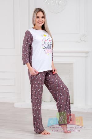 Наименование: Женская пижама "Полоса" 2395-К / Коричневый