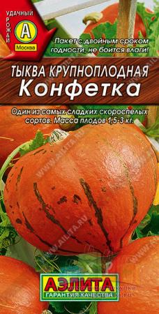 Наименование:1003A Тыква крупноплодная Конфетка 2гр Цена: 17.43 руб Описание: Один из самых сладких скороспелых сортов. От всходов до съема плодов 90-100 дней. Растения плетистые, одновременно формируют по 4-6 плодов массой 1,5-3 кг. Кора кожистая, мягкая. Мякоть красно-оранжевая, хрустящая, плотная, сочная. Плоды сохраняют товарные качества в течение 90-120 дней после съема. Урожайность 3-5 кг/м2.