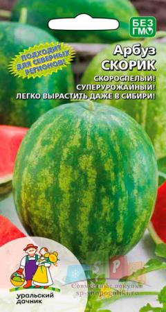 Наименование:8001N Арбуз Скорик 10шт Цена: 15.3 руб Описание: Скороспелый сорт с дружной отдачей урожая. Плоды округлые, гладкие, зелёные, с полосами, массой от 4 до 10 кг. Мякоть ярко-красная, нежная, сочная, сладкая, с сильно выраженным арбузным ароматом. Ценность сорта: скороспелость, дружная отдача урожая, отличные вкусовые качества, устойчивость к болезням, хорошая лёжкость. Посев на рассаду в начале мая. Высадка рассады в открытый грунт в конце мая – начале июня, в фазе 3-4-х настоящих листьев. Схема посадки 100х100 см. В южных регионах можно выращивать путём прямого посева в грунт в апреле – мае. При выращивании под плёночными укрытиями растения формируют в один стебель (удаляют все боковые побеги до высоты 50 см, последующие прищипывают над 1-З листом), подвязывают к шпалере. Для хорошего роста и обильного плодоношения растениям необходим своевременный полив, регулярная прополка, рыхление и подкормка минеральными удобрениями.