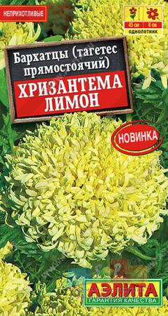 Наименование:1283A Бархатцы Хризантема лимон прямостоячие 0,1гр Цена: 22.03 руб Описание: Впечатляющий сорт бархатцев с крупными хризантемовидными соцветиями. Кусты прочные, сильноветвистые, высотой 35-45 см, устойчивые к непогоде, с большим количеством цветоносов. Соцветия d 7-8 см, густомахровые, плотные, в изобилии появляются с начала лета и до первых заморозков. Растения великолепно подходят для создания бордюров, украсят клумбы, рабатки и садовые контейнеры. Дают отличную срезку.