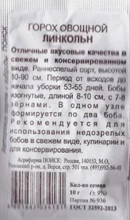 <p>Среднеспелый высокопродуктивный лущильный сорт. Растение мощное, крепкое, высотой 160-170 см. Бобы внушительного размера с 8-9 крупными (не менее 1 см в диаметре) вкусными горошинами. Зеленый горошек богат легкоусвояемыми белками, витаминами и минеральными веществами. В свежем виде это очень полезное лакомство для детей и взрослых. Также хорошо подходит для замораживания и консервирования. Посев производят ранней весной на солнечной стороне участка на глубину 4-6 см. Схема посева: 15x30 см. Растения нуждаются в опоре.</p>