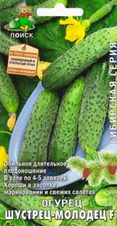 <p>Скороспелый (43-48 дней от всходов до плодоношения) партенокарпический гибрид женского типа цветения. Выращивается в открытом и защищенном грунте. Плод цилиндрический, темно-зеленый, с небольшой крапчатостью, белошипый, длиной 12-14 см, массой 100-130 г. Бугорки среднего размера, расположены часто. В узле по 2-3 завязи. Мощное растение устойчиво к настоящей мучнистой росе, корневым гнилям и пероноспорозу. Хорошо плодоносит даже в неблагоприятное лето. Зеленцы сладкие хрустящие, без пустот, отлично подойдут для посола, маринования, и употребления в свежем </p> <p>Фасовка 10шт</p> </div>