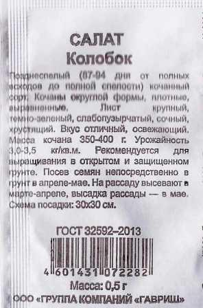 <p>Кочанный сорт салата с хрустящими и сочными листьями. От всходов до потребительской годности (образование кочана) проходит 50-55 дней. Нежные сладковатые листья не грубеют. Они собраны в красивый рыхлый кочан, масса которого может достигать 400 г и более. Для получения полноценного кочана растению необходима хорошая агротехника (прежде всего – освещение и поливы) и обязательное соблюдение схемы посадки. Сорт универсального использования в кулинарии, обладает приятным вкусом. Он прекрасно подойдет для овощных и мясных салатов, для легких закусок с курицей, индейкой или морепродуктами.</p> <p>Фасовка 0,5г</p> </div>