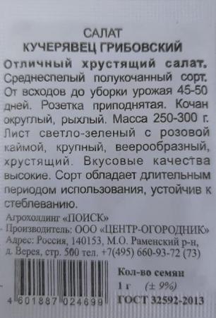 Наименование:Салат Кучерявец Грибовский ч/б (Код: 88893) Цена: 8.5 руб Описание: <div>