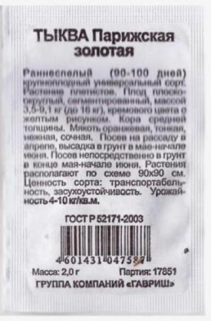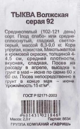 Наименование:Тыква Волжская серая ч/б (Код: 82781) Цена: 9.1 руб Описание: <div>