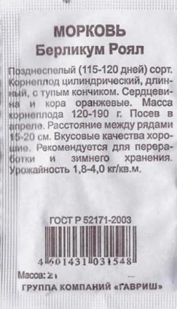 <p><span><span>Великолепный, высокоурожайный, среднеспелый сорт (период от всходов до технической спелости 90-110 дней). Корнеплоды цилиндрической формы, гладкие, тупоконечные, длиной 16-18 см. Мякоть сочная, нежная, сладкая, оранжевого цвета, отличного вкуса. Сердцевина маленькая, по окраске не отличается от мякоти. Незаменима для выращивания на пучковую продукцию в защищенном и открытом грунте, а также для потребления в свежем виде и зимнего хранения. </span> <br></span></p>