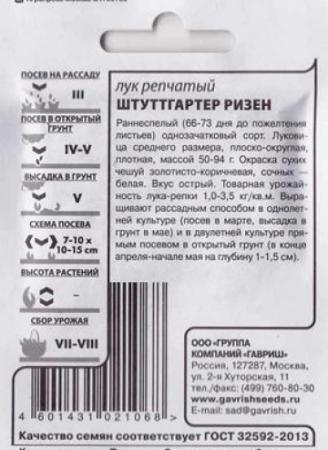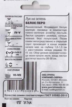 <p>Салатный, среднеспелый зимостойкий сорт салатного назначения, период от начала отрастания листьев до хозяйственной годности - 30 дней. Растение со средней степенью ветвления. Листья длиной до 35 см, зелёные, со слабым восковым налётом, сочные, долго не грубеющие, с нежным слабоострым вкусом. Число листьев на один побег -4. Ценятся за высокую урожайность, раннее получение зеленой продукции, высокую зимостойкость, повышенное содержание в листьях витамина С, каротина, витаминов В1, В2. Масса одного растения 50-60 г. Урожайность 4,2-4,6 кг/кв.м. Возделывается как в однолетней, так и в многолетней культуре. При многолетней культуре посев осуществляют в рядки гнездами по 2-3 семени на глубину 0,5-1,5 см, через каждые 20 см. За лето можно проводить 3-4 срезки зеленого пера. На одном месте выращивают 4-6 лет.</p> <p>Фасовка 1г</p> </div>