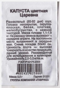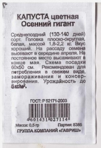 Наименование:Капуста б/к Мензания F1 ЭКОНОМ Цена: 29.6 руб Описание: Новый высокопродуктивный среднепоздний гибрид. Растение мощное. Розетка листьев горизонтальная. Кочан округло-плоский, покрытый, на разрезе беловатый. Внутренняя структура кочана плотная, хрустящая. В отличие от большинства стандартных гибридов для переработки, полностью отсутствует горечь. Наружная и внутренняя кочерыга средней длины. Масса кочана 2,0- 3,2 кг (до 6 кг). Вкус хороший и отличный. Рекомендуется для использования в свежем виде, квашения и краткосрочного хранения (5-6 месяцев). Гибрид Мензания F1 отличается хорошей сохраняемостью на корню и транспортабельностью, устойчив к сосудистому бактериозу и фузариозу.