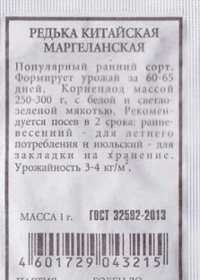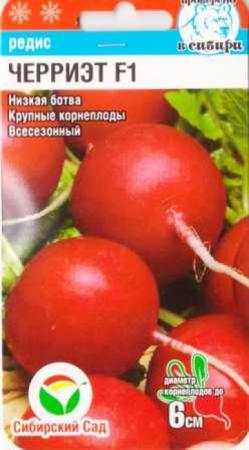 <p>Скороспелый (21-25 дней от всходов до технической спелости) сорт. Рекомендуется для выращивания в открытом и защищенном грунте. Корнеплод округлый, темно-красный, длиной 4 см, диаметром 3 см, массой до 20 г. Мякоть белая, сочная, без горечи. Сорт отличается дружной отдачей урожая, отличными вкусовыми качествами, относительно устойчив к болезням. В открытый грунт посев проводят с апреля по май и с июля по август, по схеме 5-7x15 см. Урожайность до 4,0 кг/кв.м.</p>