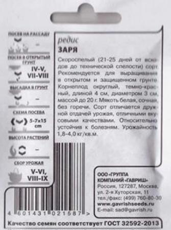 Наименование:Редис Заря ч/б (Код: 83033) Цена: 5.5 руб Описание: <div>