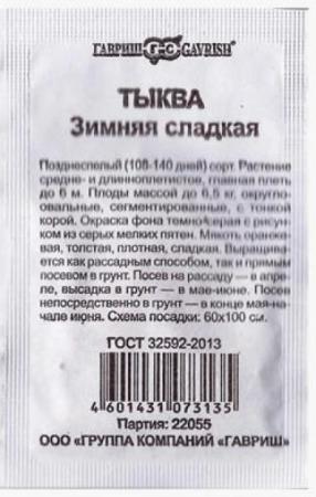 Наименование:Тыква Зимняя сладкая ч/б (Код: 81480) Цена: 10.2 руб Описание: <div>