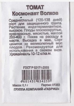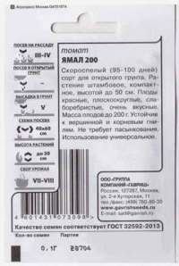 <p>Среднеспелый сорт с томатами великолепного вкуса, который порадует обильным и продолжительным плодоношением. Рекомендован для выращивания в открытом грунте и во временных пленочных укрытиях. Растение индедерминантое, высокорослое, средневетвистое. Красные плоды сливовидной формы массой 30–40 г, плотные, слаборебристые. Прекрасно подходят для свежих салатов, домашней кулинарии и цельноплодного консервирования как по отдельности, так и в ассорти месте с желтоплодными черри-томатами. Урожайность 6,9–8,9 кг/м2. Ценность сорта: дружная отдача урожая, хорошая лежкость, великолепный вкус. Посев на рассаду — в начале марта. Пикировка рассады — в фазе первого настоящего листа. Высадка рассады — в теплицы в мае. Схема посадки: 40х60 см. Обязательна подвязка растений через несколько дней после посадки. Формируют в один стебель, удаляя все «пасынки», в конце вегетации точку роста прищипывают. Семена после уборки сохраняют всхожесть в течение 10 лет при оптимальных условиях хранения. Рекомендуется увеличить норму высева по истечение срока годности.</p> <p>Фасовка 0,05г</p> </div>