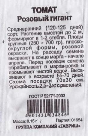 <p>Сибирская Селекция! Среднеспелый (105-125 дней от всходов до созревания) высокопродуктивный сорт-богатырь для открытого грунта и пленочных укрытий. Характеризуется стабильной завязываемостью и высокой урожайностью при выращивании во всех климатических зонах России. Крупный размер, отличный товарный вид, отменный вкус плодов и достойная урожайность - основные ценные характеристики этого сибирского сорта.