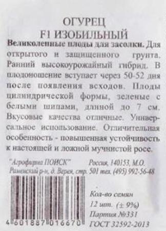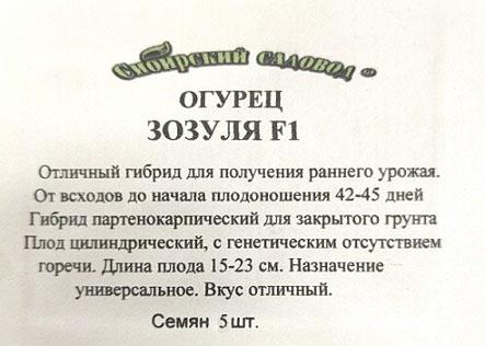 <p><span>Позднеспелый (55-70 дней) пчелоопыляемый сорт для открытого грунта. Растение длинноплетистое, средневетвистое, смешанного типа цветения. Зеленцы цилиндрические, бугорчатые, зеленые с восковым налетом, черношипые, длиной 10-12 см, массой 100-130 г. Ценность сорта: устойчивость к ложной мучнистой росе и пониженным температурам, стабильная урожайность, товарность и засолочные качества. Назначение универсальное.</span></p>