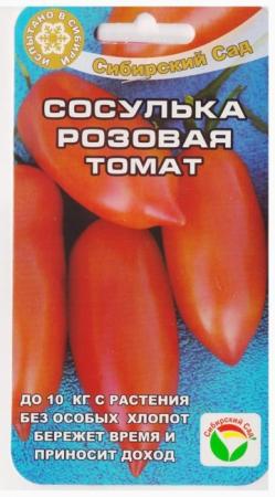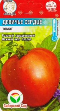 <p>Сибирский среднеспелый (100-115 дней) сорт-гигант изящно-сердцевидной формы с красиво оформленным вытянутым носиком. Приспособлен к суровому климату северных регионов, устойчив к основным заболеваниям, обеспечивает длительное стабильное плодоношение до первых заморозков. Рекомендуется для выращивания в защищенном грунта и открытом грунте. Растение хорошо облиственное, крепкое, полукомпактное, высотой 2м и более. Первая кисть завязывается рано, над 5-6 листом, последующие через 3-4 листа. Плоды сердцевидные с носиком, малиновые, массой до 800 г. Мякоть плотная, сочная, зернистая, сладкая, практически без семян. Вкусные томаты имеет высокую дегустационную оценку, хороши в салатах, соках, для свежей нарезки и других кулинарных шедевров. Сорт хорошо реагирует на полив и подкормки комплексными минеральными удобрениями. Урожайность высокая до 10-12кг/м2. При необходимости защиты от фитофтороза и альтернариоза реком</p> <p>Фасовка 20шт</p> </div>