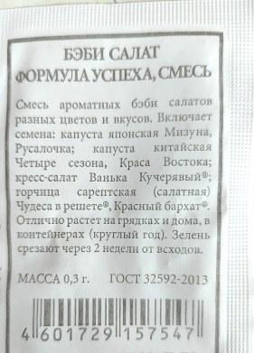 Наименование:Салат Бэби Формула успеха (смесь) ч/б (Код: 89939) Цена: 6.2 руб Описание: <div>