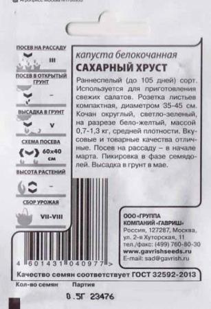 <p>Среднеспелый сорт для выращивания в открытом и защищенном грунте. Формирует плотные кочаны среднего размера за 45-50 дней после всходов. Головки удлиненно-овальные, светло-зеленые высотой 20-25 см. Листья сладкие и ароматные, с хрустящими сочными прожилками. Подходят для приготовления легких салатов, закусок и бутербродов. Сорт устойчив к цветушности, дает большой урожай при любой длине дня.</p> <p>Фасовка 0,5г</p> </div>