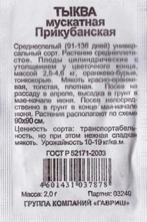 Наименование:Тыква Прикубанская ч/б (Код: 82782) Цена: 9.1 руб Описание: <div>