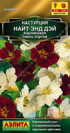 Наименование:1626A Настурция Найт энд дэй карликовая, смесь сортов 1гр Цена: 22.72 руб Описание: Карликовая смесь настурции «Ночь и день» представляет собой композицию из двух сортов с очаровательными кремово-белыми и бордовыми цветками диаметром 4-5 см, которые располагаются над листвой. Растения компактные, высотой 30-40 см, неприхотливые в уходе. Цветение раннее и продолжительное, с начала июля и до первых заморозков. Смесь отлично смотрится в бордюрах и рабатках, идеально подходит для горшков и балконных ящиков. Молодые листья и цветки можно использовать в кулинарии.