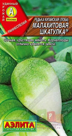 Наименование:0805A Редька китайская Зеленая богиня 1гр Цена: 15.59 руб Описание: Очень популярный сорт. Не имеет равных по скороспелости, продуктивности и вкусовым качествам. Формирует урожай за 60-63 дня от всходов. Корнеплоды массой 350-400 г, гладкие, с нежной, сочной, изумрудно-белой мякотью. Вкус сладкий с легкой остринкой, без горечи. Салаты из редьки – вкусное и эффективное противовирусное лекарство, они укрепляют иммунитет, восполняют дефицит витаминов и минеральных солей в организме. Корнеплоды хорошо хранятся зимой. Урожайность 5-6 кг/м2.