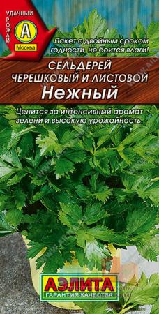 Наименование:6046U Сельдерей листовой Нежный 0,5гр Цена: 8 руб Описание: Высокоурожайный среднеспелый сорт. Массовую срезку зелени проводят через 90-100 дней, выборочную – значительно раньше. Розетки листьев с множеством боковых побегов, массой до 500 г. Листья среднего размера, нежные, сочные, отличного вкуса, очень ароматные. Они долго не грубеют и быстро отрастают после срезки. Подходят для сушки и замораживания. Сорт холодостойкий, устойчив к болезням и вредителям. Урожайность 3,5 кг/м2.