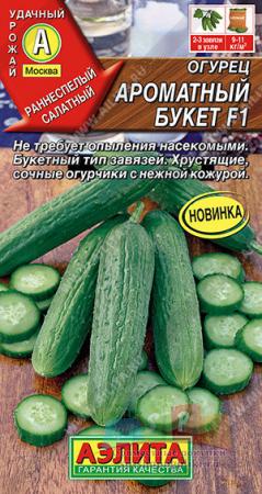 Наименование:0647A Огурец Ароматный букет F1 10шт Цена: 20.14 руб Описание: Партенокарпический салатный гибрид для открытого и защищенного грунта. По срокам созревания – раннеспелый. Хрустящие, ароматные огурчики можно попробовать через 45-50 дней после появления всходов. Цветки женского типа, формируются пучками. В каждом узле образуется по 2-3 завязи. Зеленцы выровненные, длиной 13-15 см, массой 120- 130 г. Урожайность гибрида в теплице – 9-11 кг/м2.