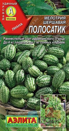 Наименование:0598A Мелотрия (Мышиная дыня) Полосатик 10шт Цена: 29.95 руб Описание: Декоративное, вьющееся, однолетнее растение. Быстро формирует объемный занавес изумрудной зелени, увенчанный множеством желтых цветков. Сорт с легкостью позволит украсить вертикальные садовые формы, подойдет для высоких вазонов и подвесных кашпо. Через 52-57 дней после всходов образует первые кисловатые плоды длиной 2-3 см (3-4 кг за вегетацию) и к концу сезона – около 1 кг сочных клубней массой до 300 г. В пищу их употребляют в свежем виде, плоды маринуют и солят. Сорт устойчив к болезням и вредителям.