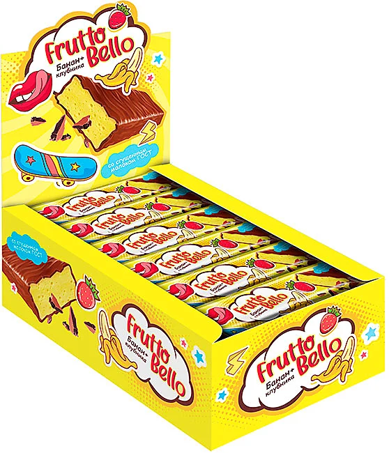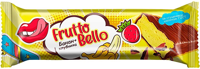 Батончик со вкусом ароматной клубники и банана, покрытый нежной глазурью.
