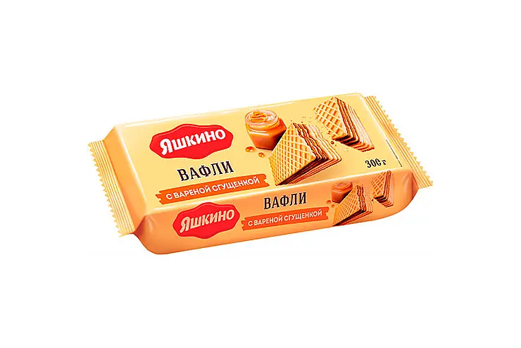 Наименование:«Яшкино», вафли с варёной сгущёнкой, 300 г Цена: 72 руб Описание: Семь слоев хрустящих вафель с начинкой со вкусом вареной сгущенки.