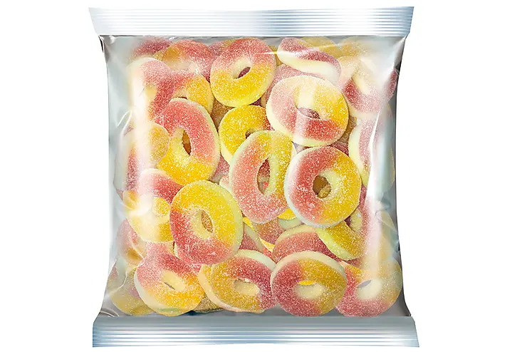 Лакомство упаковано в нарядный пакетик с замком-липучкой, который можно неоднократно открывать и закрывать.