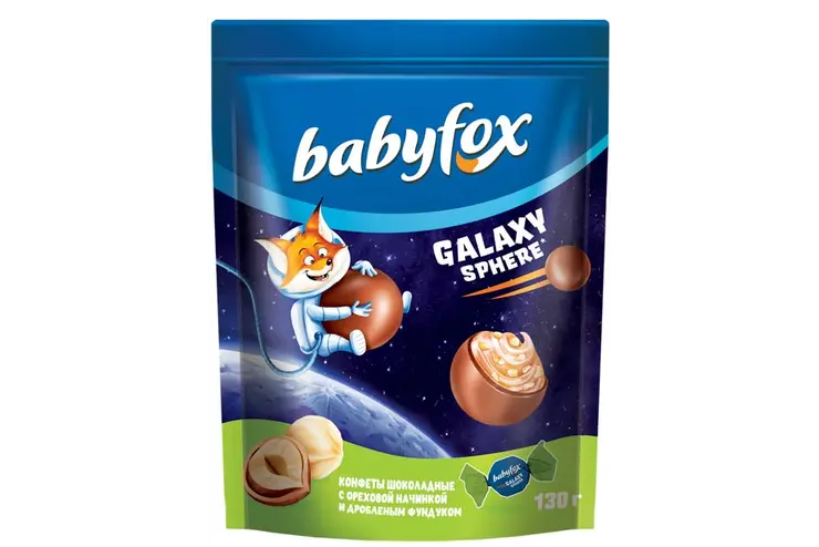 Наименование:«BabyFox», конфеты шоколадные Galaxy sphere с фундуком, 130 г Цена: 119 руб Описание: Нежнейший молочный шоколад с ореховой начинкой из фундучной пасты и дробленым орехом.