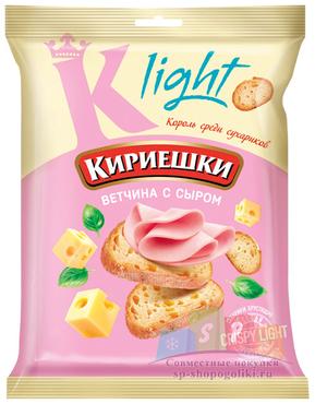 Наименование:«Кириешки Light», сухарики со вкусом ветчины с сыром, 33г Цена: 11.2 руб Описание: Низкокалорийные сухарики с пикантным вкусом ветчины и сыра. «Кириешки Light» – сухарики нового поколения, изготовленные по уникальной технологии «Сrispy Light», обеспечивающей хруст и легкость. В основе сухариков кукурузная мука, сбалансированная по составу жиров, белков, углеводов и обогащенная клетчаткой. Современная технология сохраняет неповторимый вкус сухариков. Низкокалорийные сухарики – легкий снек для перекуса и отличная закуска к пенным напиткам. Но их можно использовать и в кулинарии. – Ароматные сухарики необычной овальной формы придадут вкусовую и эстетическую завершённость разнообразным супам-пюре: тыквенному, грибному, сырному, супу из цветной капусты и многим другим.
