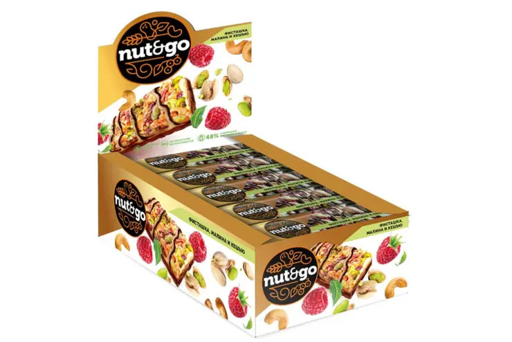 Шоколад с благородным немного терпким вкусом элитных какао-бобов с добавлением тертого кешью и дробленого фундука.
